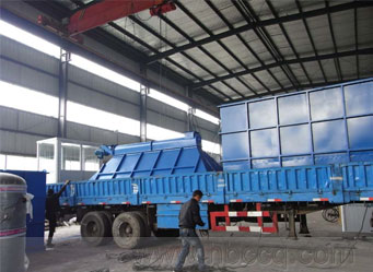 浙江寧波北倫電廠粉煤灰處理用PPC96-8布袋除塵器運抵現(xiàn)場,正在卸車。