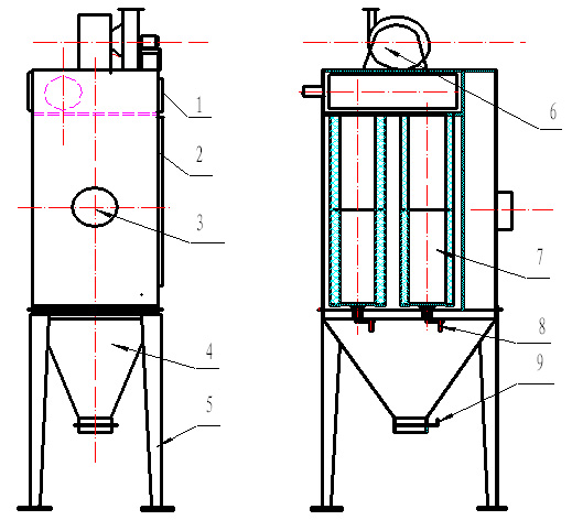 濾筒除塵器是一種比較先進(jìn)的過濾設(shè)備,優(yōu)點(diǎn)是除塵效率高,設(shè)備體積小,過濾面積大,過濾風(fēng)速低,噪音低等多種優(yōu)點(diǎn).被過濾粉塵僅停留在濾料超細(xì)纖維層的外表,所以大大減少了過濾阻力,節(jié)省耗電30%以上,節(jié)能效果顯著,并且清灰十分徹底.同時也解決了超細(xì)粉塵,纖維性粉