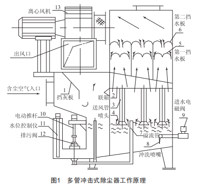 多管沖擊除塵器是一種通用設備,需要對其經常進行維護保養,設備長時間運行,會使沖洗水噴嘴堵塞,排污閥處卡有異物等,造成排污困難,內部煤泥越積越多,影響除塵效果,造成噴粉。沖洗,清理內