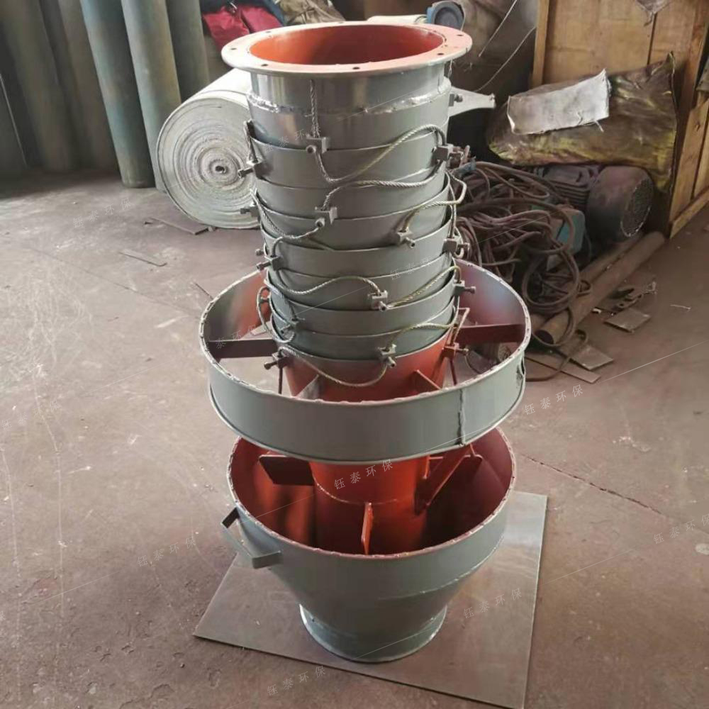 干灰散裝機(jī)錐形筒改為直鋼套筒式伸縮節(jié)的好處是,能使灰粉流與排氣氣流盡可能地分開構(gòu)成密封雙通道,讓灰粉流在裝車頭下料管道內(nèi)更流暢,增加灰粉流進(jìn)入罐車的速度,節(jié)約裝載時(shí)間。內(nèi)直鋼套筒結(jié)構(gòu)更加增大設(shè)備耐磨性。